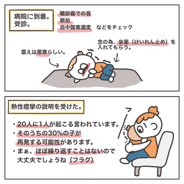 診察では先生から熱性けいれんの説明がありました。